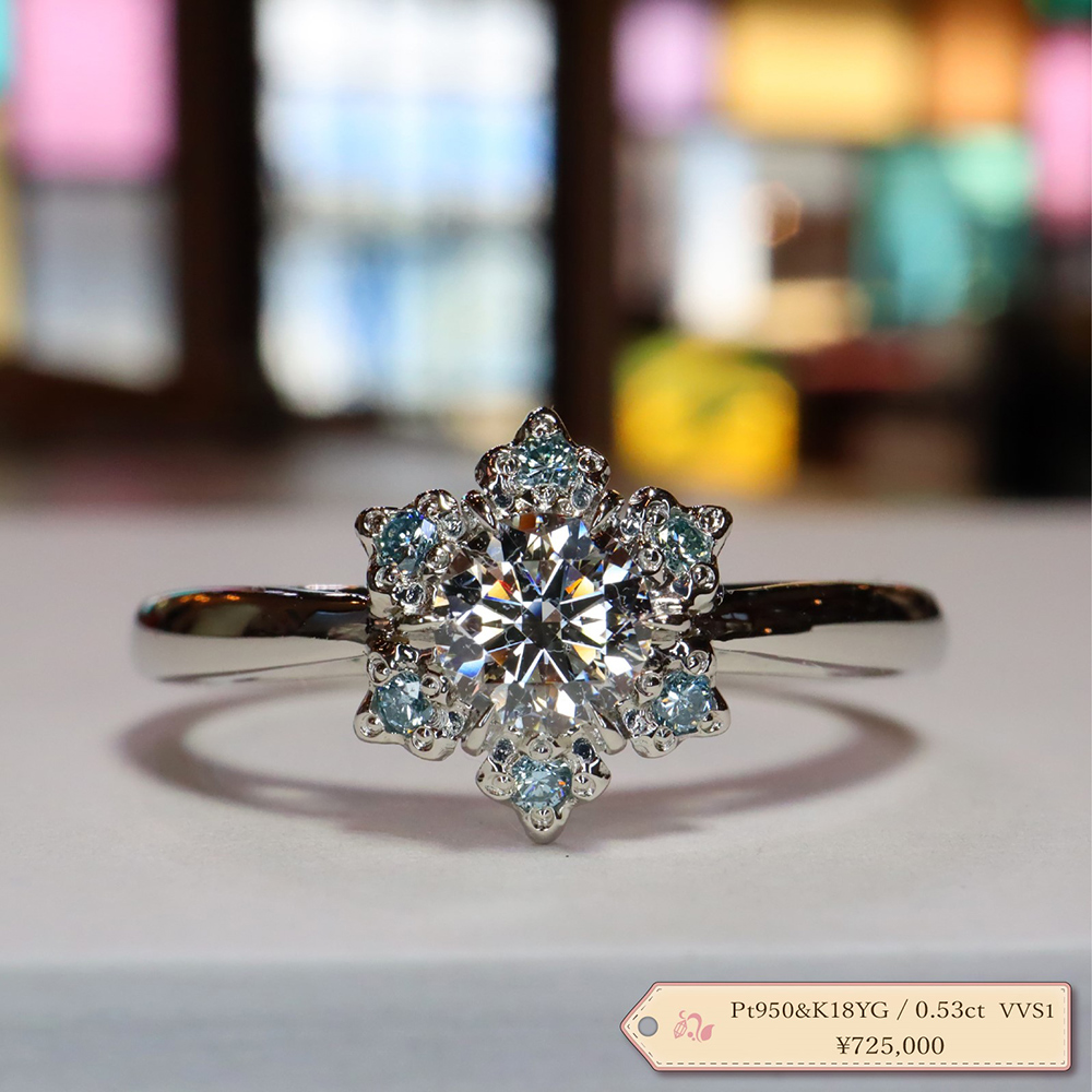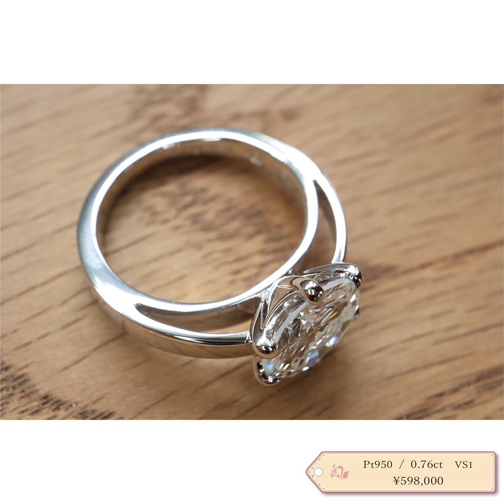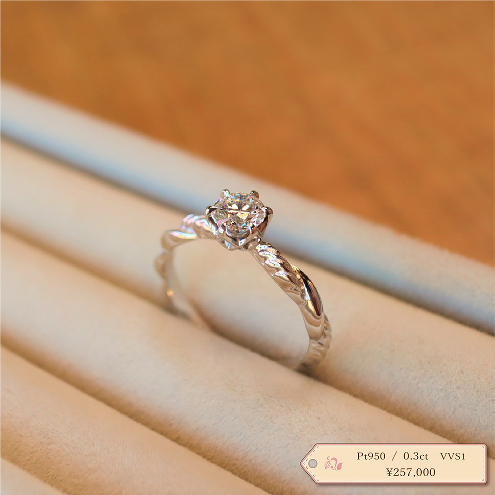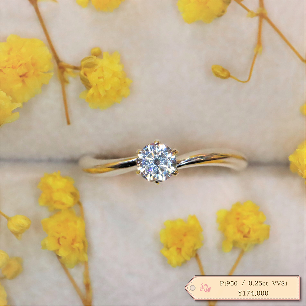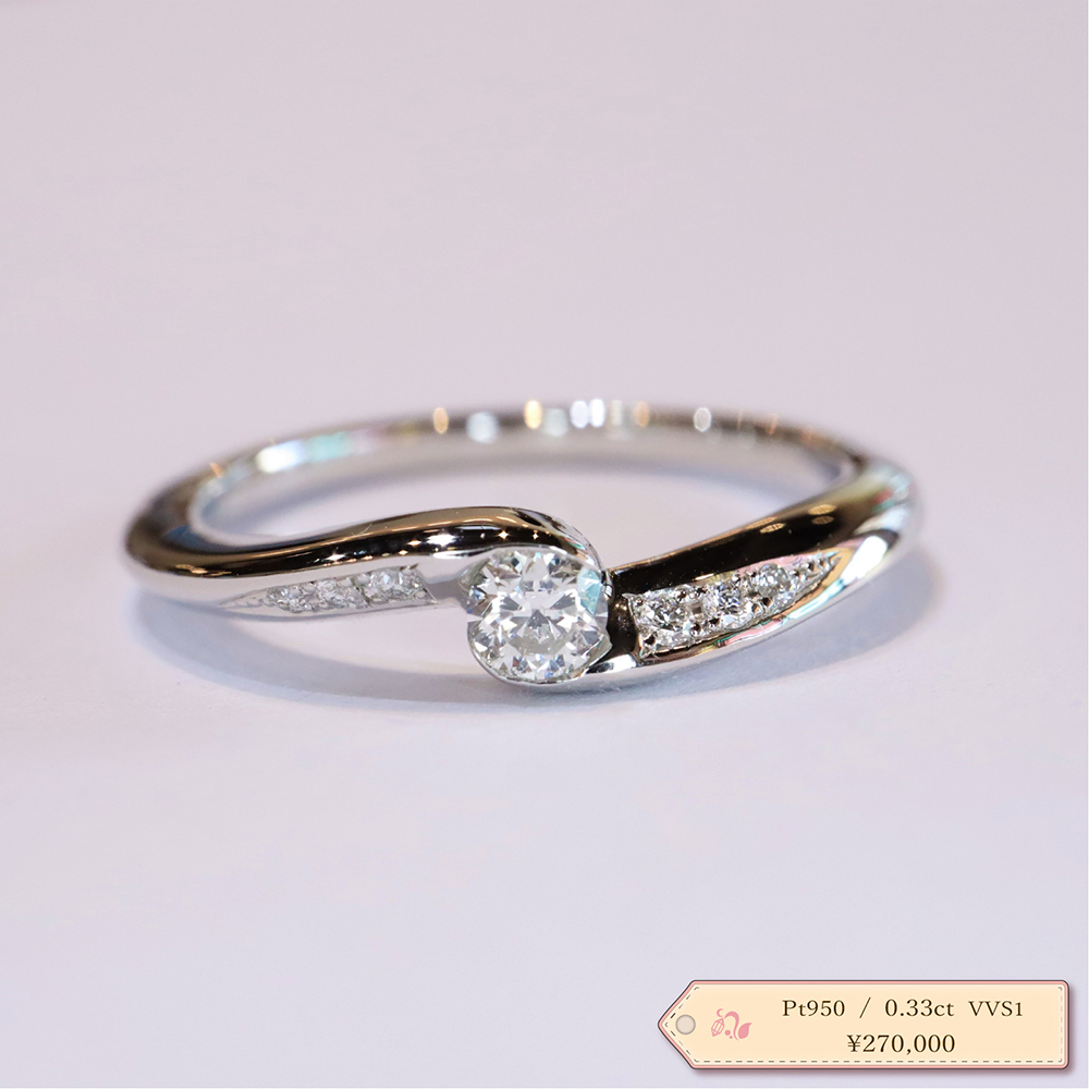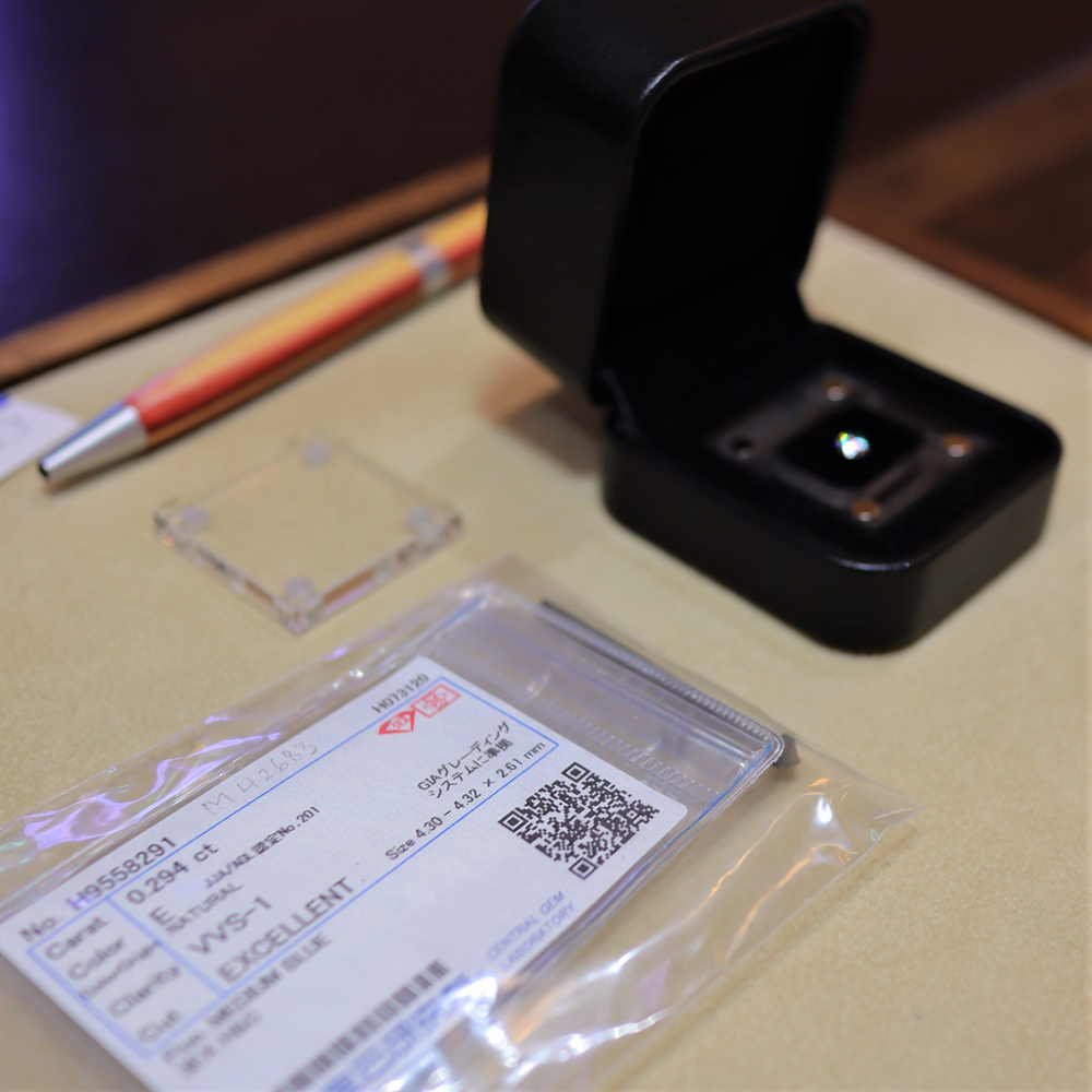 代表の目で選んだダイヤは、まるで澄んだ水をカットしたような輝きです。ダイヤモンドのみの販売もできるので『宝石でプロポーズ』も可能です。