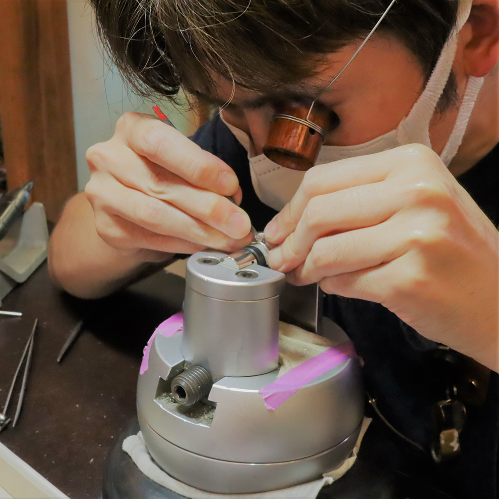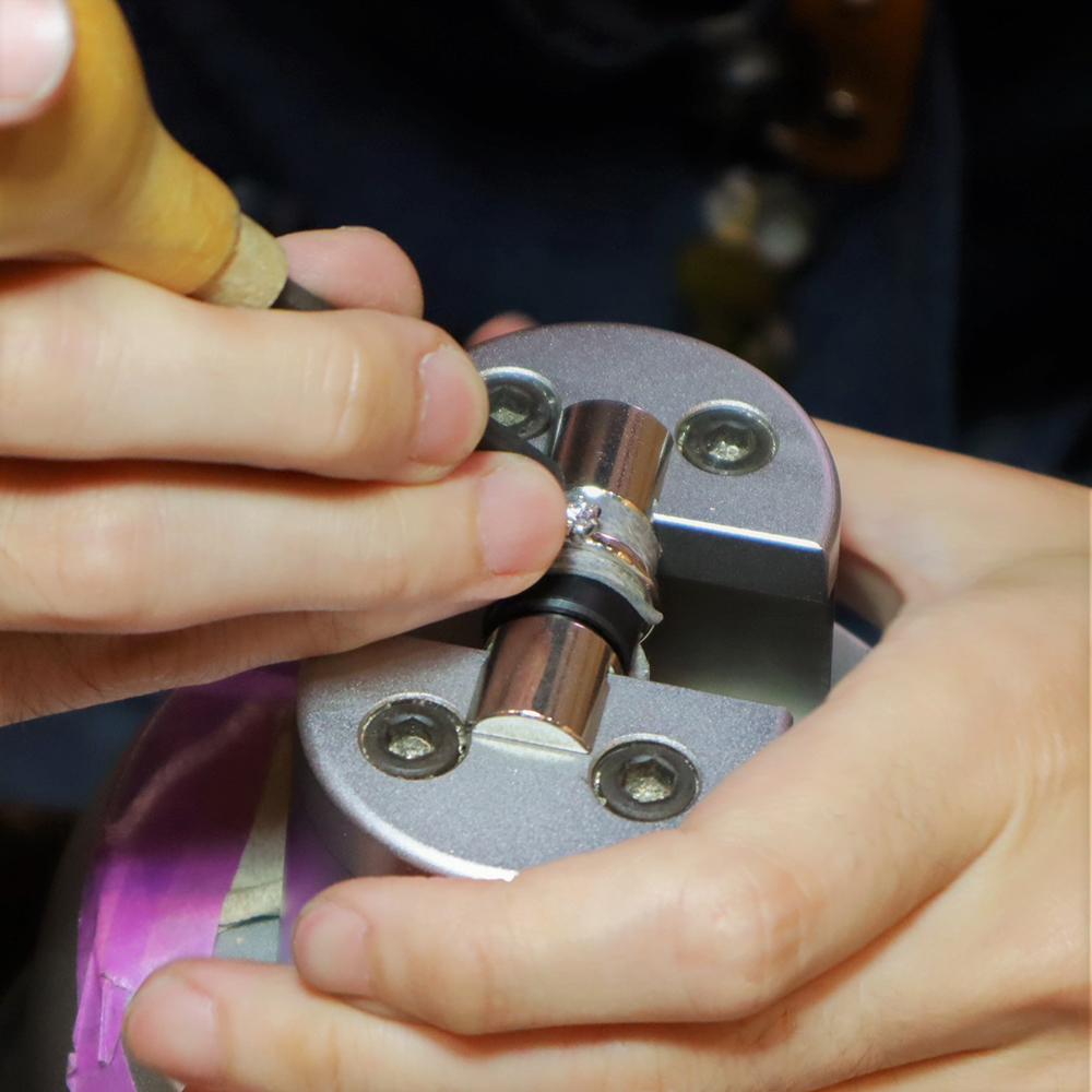 - 石留前のダイヤモンドはもちろん、石留の作業もお見せ出来ます。