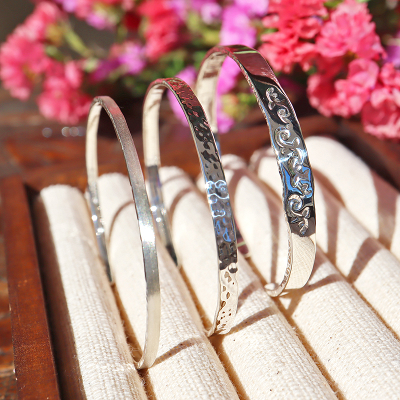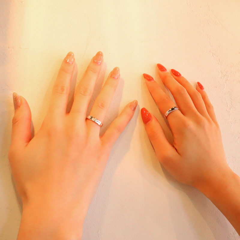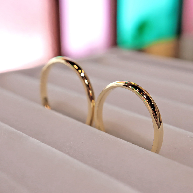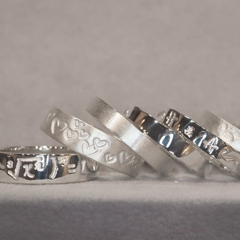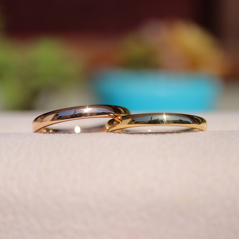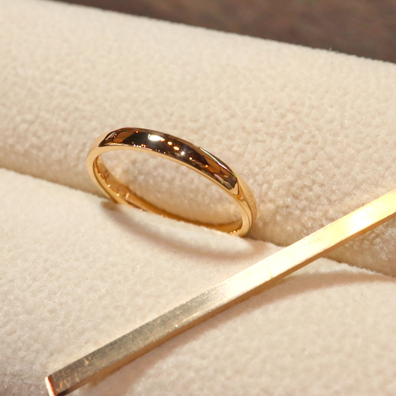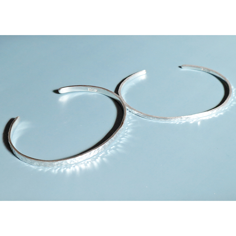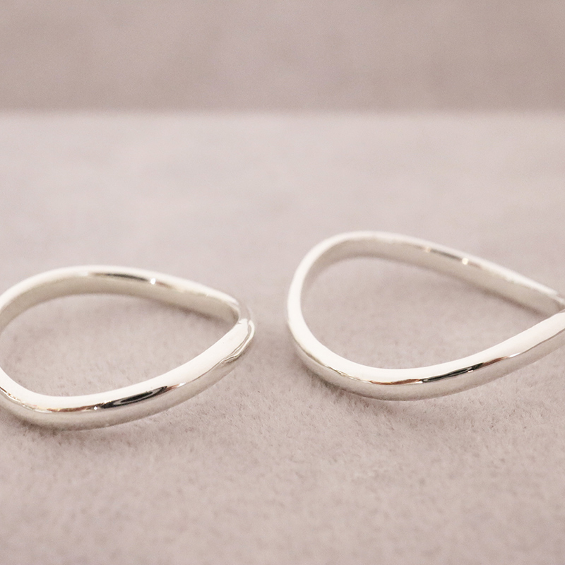 バングルは楕円の形に、指輪は真円にしてサイズ調整をします。