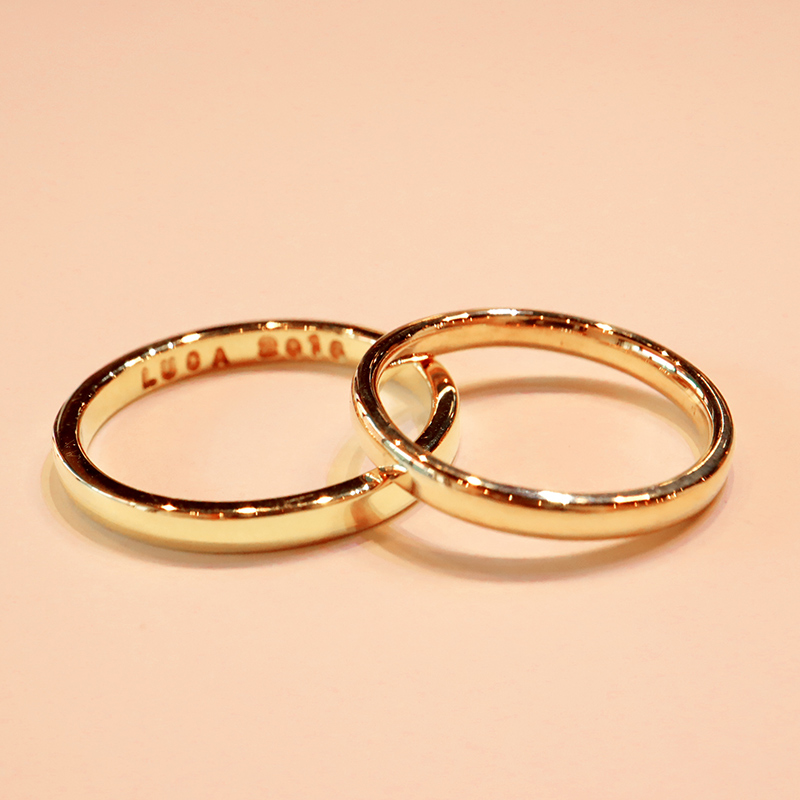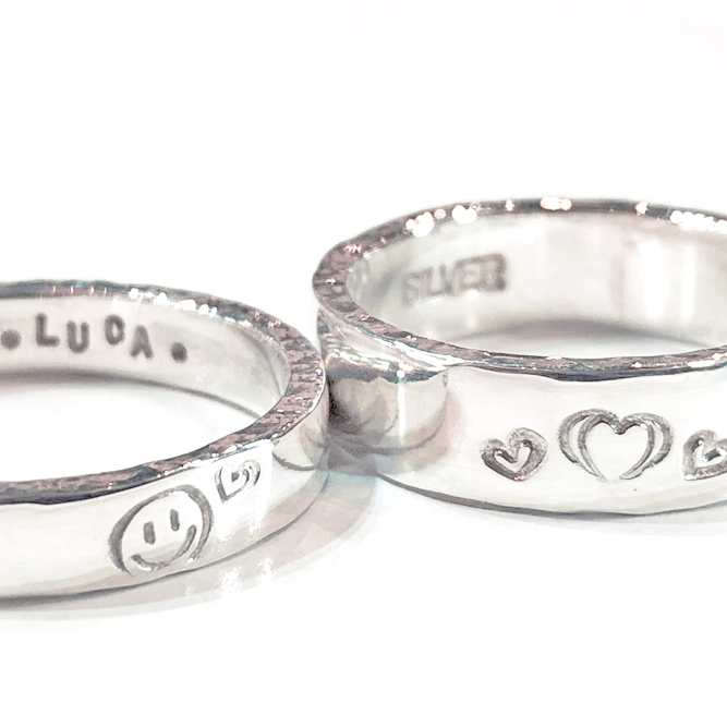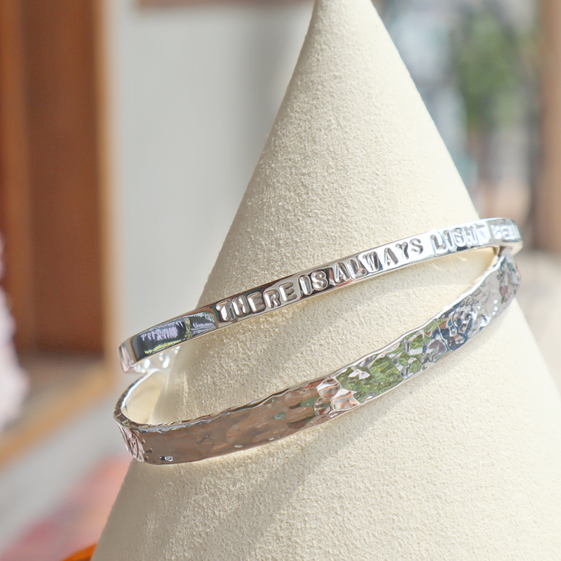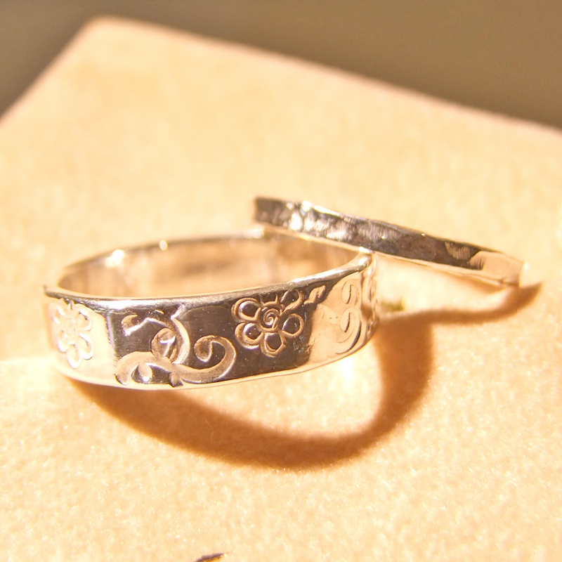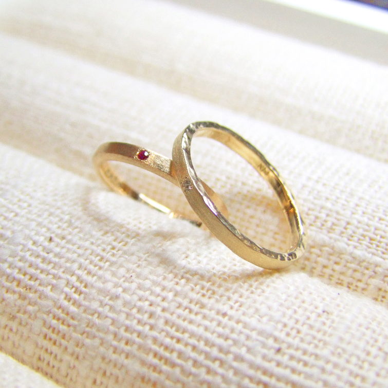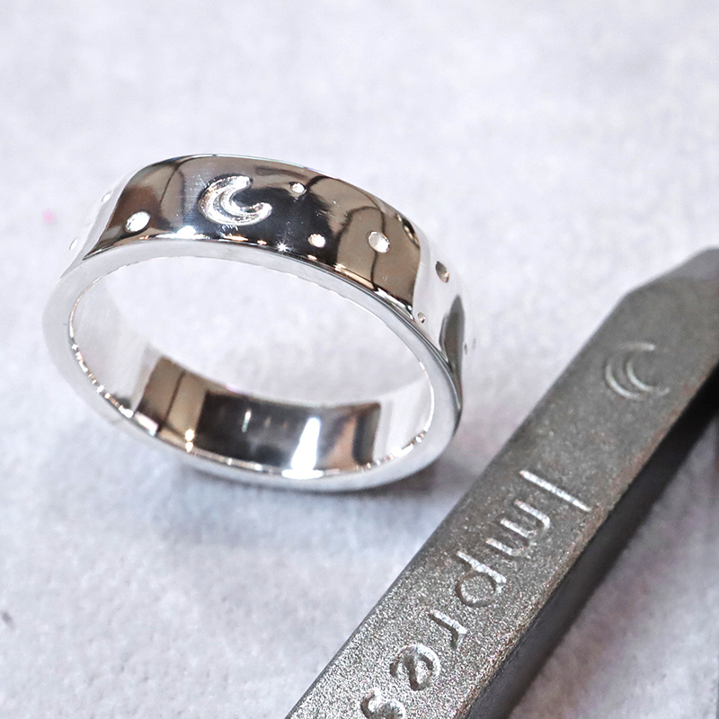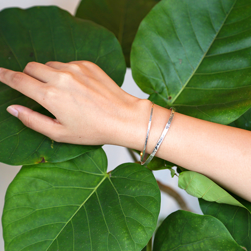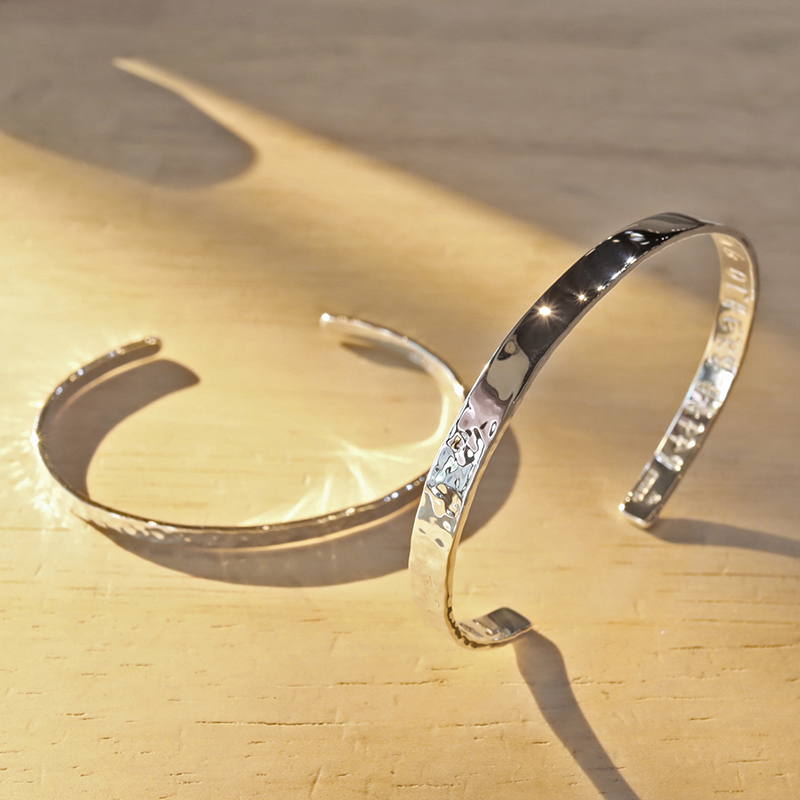 バングルは楕円の形に、指輪は真円にしてサイズ調整をします。